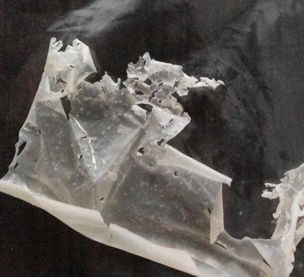 Kitosan selanjutnya dilarutkan ke dalam larutan asam asetat dengan diberi tambahan gliserol. Setelah itu, dioven sehingga diperoleh plastik yang diinginkan. Hasil penelitian menunjukkan limbah sisik ikan kakap dan ikan gurami berpotensi untuk digunakan dalam pembuatan plastik.